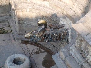Walking through the Golden Gate we entered a small courtyard. A door leads to the Palace of the 55 Windows. The Golden Fountain of Bhaktapur is situated in another courtyard. The fountain like the Golden Gate has elaborately decorated metalwork.