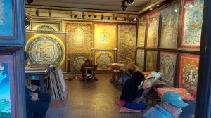 Walking between squares we passed a shop where artists were meticulously creating thangkas and mandalas.