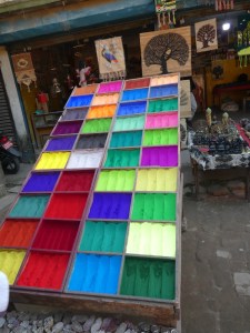 The colourful dyes and the Rudraksha beads caught my eye.