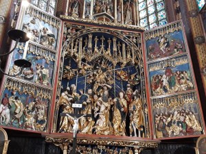 Veit Stoss, a German sculptor created the work of art in the 15th century. The triptych measures 13 metre by 11 metre.