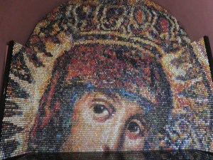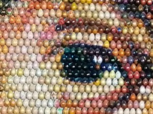 A most unexpected mosaic was the face of the Virgin Mary, created by hand painted Easter eggs made from beech wood. This unusual work of art was created by Oksana Mas, a Ukrainian contemporary artist.