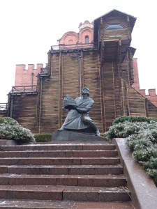 Our next stop was the Zoloti Vorota, often referred to, as the Golden Gate. This unusual shaped edifice is a reconstruction of the 11th century main gate into the city of Kiev. The statue is Yaroslav the Wise, the Grand Prince of Kiev in the 11th century.