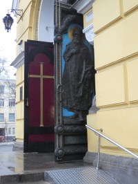 A couple of the cathedral’s domes were painted blue with gold stars. I had read that the cathedral had one of the best interiors of the city’s churches. It is indeed beautiful, its darkened interior and complete silence created a serene atmosphere. Two huge doors have relief sculptures of St. Vladimir and St. Olga.