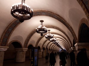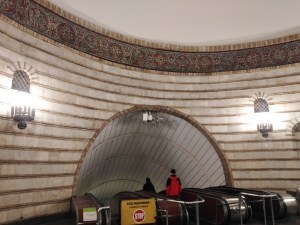 On the way back to the hotel, we decided to have a look at some of Kiev’s famous metro stations. Just a few steps away from the Golden Gate and named after it, is the Zoloti Vorota metro station.