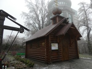 Just around the corner from the hotel, we came across a small wooden chapel similar in design to the ones we had seen in Lviv’s open air museum.