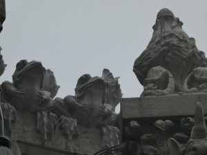 The four of us stood in awe when we arrived at Gorodetsky House. The architect responsible for this eclectic mix of stone sculptured animals that peer at you from this grey façade had an interesting and incredible imagination. The array of sculptures includes elephants, deer, the heads of rhinoceros and wild cats. A family of frogs are perched on the building’s roof.