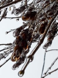 Leaving the hotel in near freezing temperatures, we once again noticed the beautiful iced branches and shrubs. Berries, leaves and blades of glass were encased in ice.