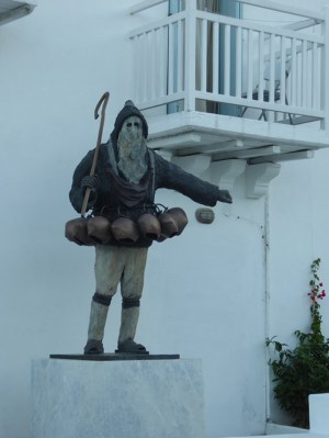 We passed the effigy of the ‘γέρος’, (old man). The Skyros ‘goat dance’ that originated in Pagan times has local men dressed as old men in shepherds clothes and a mask made from goat skin. Heavy and noisy goat’s bells are hung around their waists. This dance takes place as part of the pre Lenten festivities.