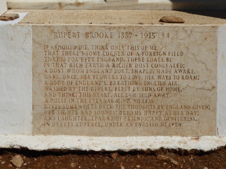 Rupert Chawner Brooke passed away on a hospital ship in a bay close by, while waiting to go to Gallipoli in 1915.