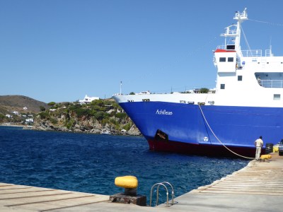 The timing was perfect. As we sat there the ferryboat FB ΑΧΙΛΛΕΑΣ – FB ACHILLES sailed in to the tune of ‘Thus Spake Zarathustra” blasting out from one of the nearby cafes. We had read that the cafe bar welcomed every incoming ferry boat with a rendition of Strauss’s famous classical piece. Now we have experienced it. Fabulous!