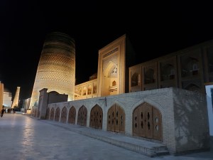 The cab dropped us off just outside the ancient inner city, known as the Itchan Kala of Khiva and we walked through the West Gate into the city. “Wow” we all exclaimed, standing still and taking in the scene in front of us. It was awesome, a wide turquoise minaret adjacent to a restored madrassa.