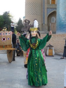 An hour or so later we went to the madrassa which was holding the acrobat show. The four of us sat chatting, relaxing in the shade. Earlier in the day the temperature had reached 30 degrees, this was much higher than the usual average daily temperatures for the month of March in Khiva.